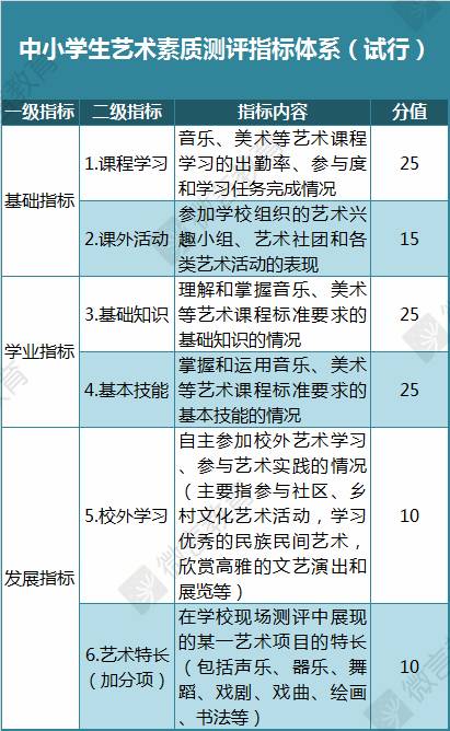 近日,教育部印发了《中小学生艺术素质测评办法》《中小学校艺术教育工作自评办法》《中小学校艺术教育发展年度报告办法》等三个文件三个文件明确,学校要如实记录每一名学生的艺术素质测评结果,纳入学生综合素质档案。初中和高中阶段学校学生测评结果作为学生综合素质评价的重要内容。
