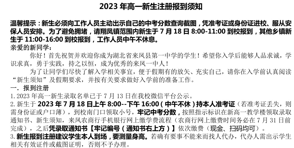 来凤一中2023级新生录取名单(按姓氏排名)