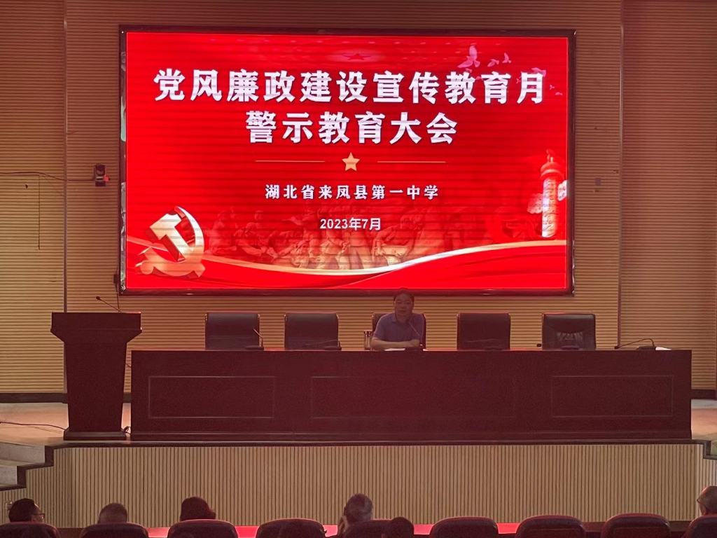 根据2023年全县党风廉政建设宣教月活动安排, 7月10号,我校召开全校教职工大会,并进行来凤一中党风廉政建设宣教月活动启动仪式。 全体教职工认真观看了党风廉政警示教...